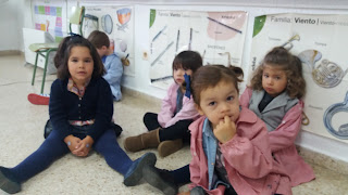 Hoy me ha tocado clases en la Parra y he estado con los infantiles de 3 años y también con el grupo de 4-5 años repasando las canciones del mes de Octubre, entre ellas dramatizando ¡Qué llueva, qué llueva!